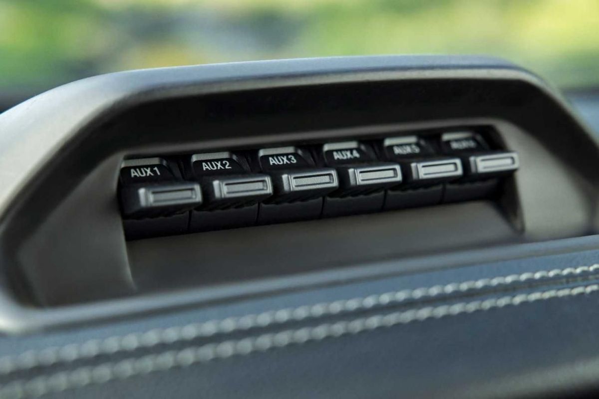 Moving inside, the Ranger Tremor is fitted with an auxiliary power bank to control features such as winches, lights and so forth and suede inserts, black details and bespoke stitching have been added to differentiate the Tremor from the standard Ranger. Other differentiating clues include the obvious Tremor decals and a magnetic finish for the grille.