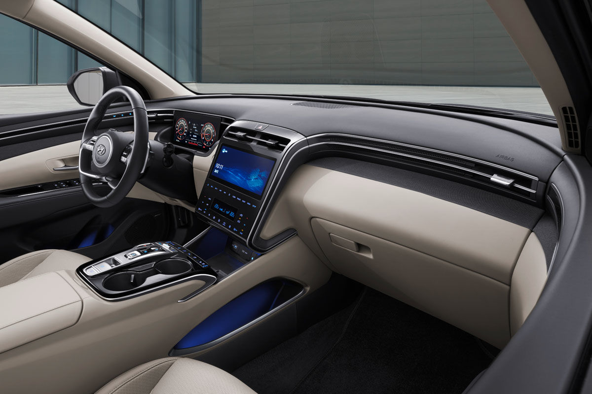 Meanwhile, the new Tucson’s smartly-finished dual-cockpit layout is characterised by a pronounced dashboard ridge that features a pair of metallic trim lines that extend through the upper door trims (so creating a wraparound effect for each of the front occupants – they also house the hidden side ventilation outlets), while the “floating” fascia, which sprouts from the elevated centre console and merges with the slim central vents, is dominated by a large, tablet-like touchscreen. What’s more, Hyundai has not just replaced an analogue instrument cluster with a digital one – it’s discarded the binnacle entirely and replaced it with a rectangular display panel that's embedded in the dashboard.
