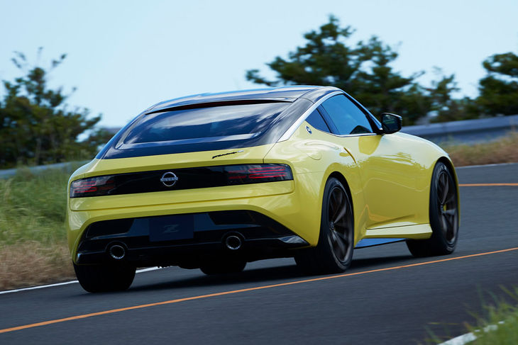 The pert rear-end of the Z Proto is characterised by late-80s/early-90s rectangular tail lights set on a black screen.