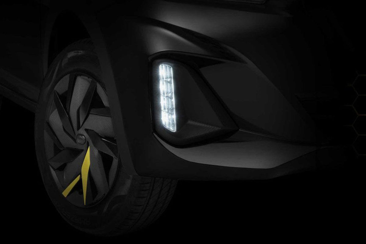 The 1.2 Five features LED running lights and its wheels are adorned with black covers with yellow accents.