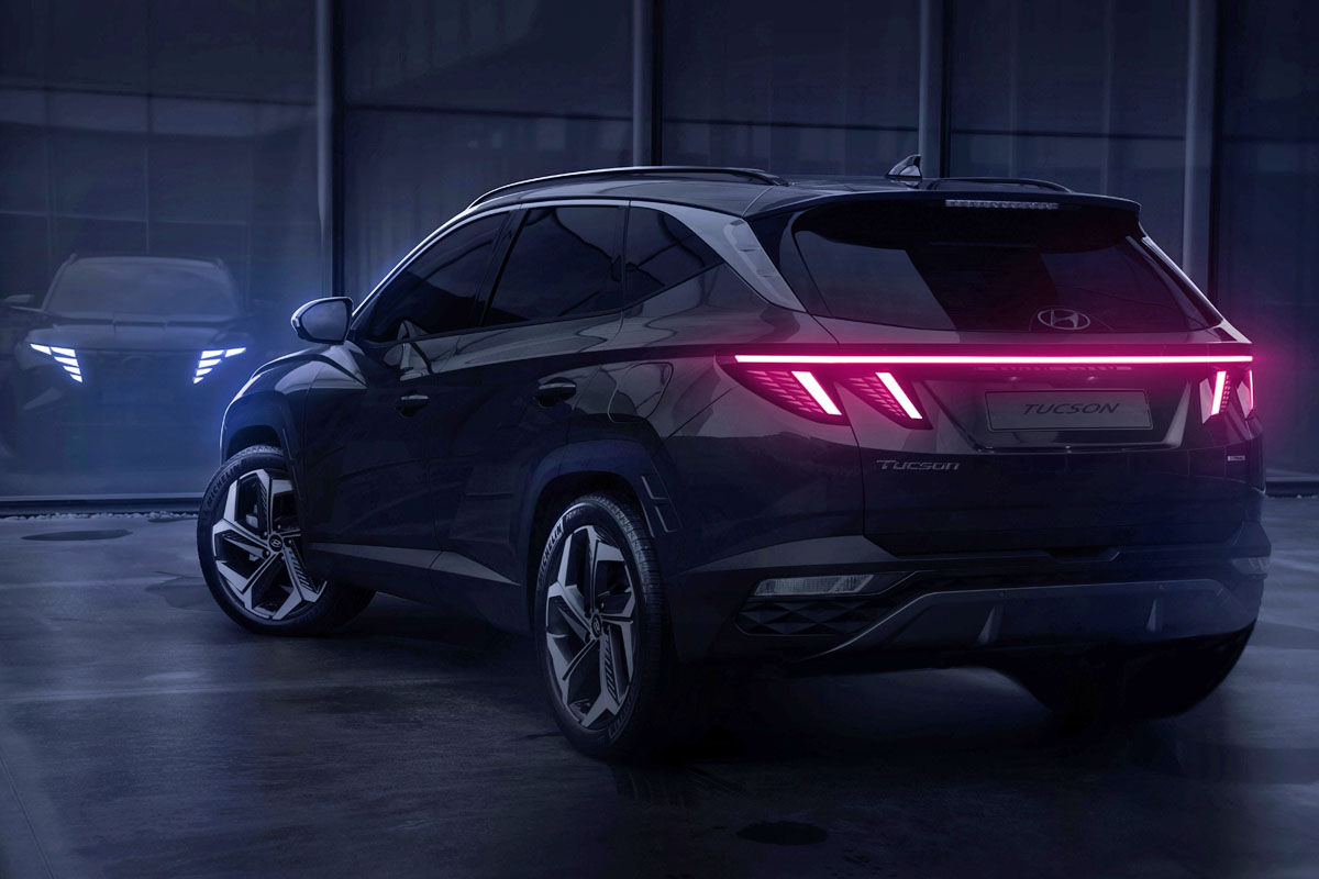 The lighting signature of the new Tucson is characterised by a wraparound LED light bar and jewel-like tail-light clusters.