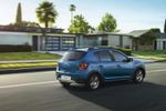 Inside, the Stepway Techroad gains a special upholstery design with blue detailing. A 7-inch infotainment system is fitted with integrated navigation, Android Auto and Apple CarPlay as well as a smartphone mirroring function. Other features include side airbags (in addition to front airbags), front and rear electric windows, electric side mirrors, multifunction leather steering wheel and cruise control. A rear parking camera and rear park assist is also standard on the Sandero Stepway Techroad.