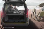 If you are expecting a clever roof tent with an integrated mattress section, you will be disappointed. VW’s Caddy Camper will feature an attachable tent section, which effectively attaches to the van’s open tailgate, creating a walkable living space. There is a deployable bed option, which measures an adequate 2m in length.