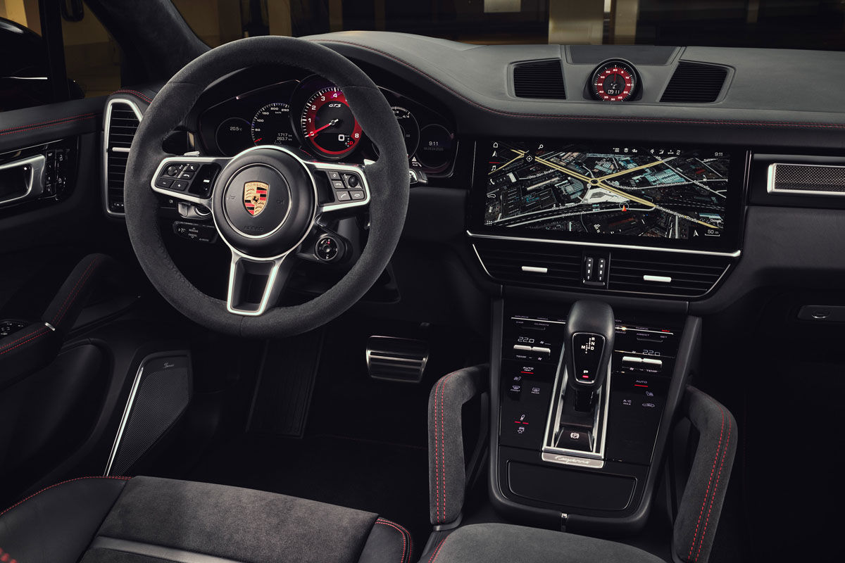 As expected, the interiors of the Cayenne- and Cayenne Coupe GTS derivatives are awash with sporty finishes and go-faster detailing. Note the liberal applications of Alcantara on the steering wheel, grab handles, door panels, centre console/armrest and roof lining. The cabins are further accented with dark-brushed aluminium inserts.