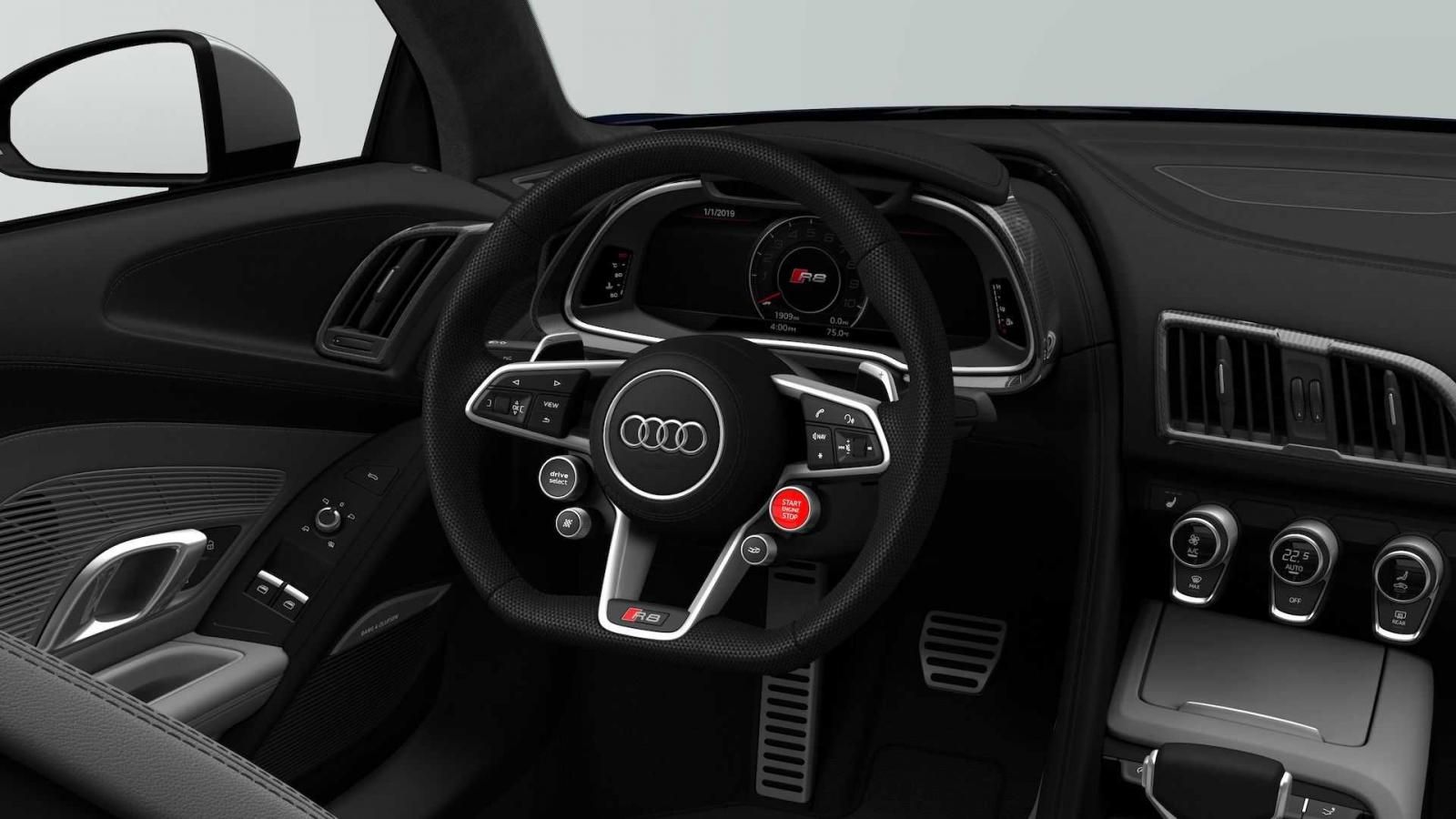 The R8 V10 Limited Edition sets itself apart with milled 20-inch silver wheels, alu-optic silver mirror housings and lower trim finishes in carbon fibre. Colour choices are limited to Mugello Blue, Avus Silver or Sonoma Green for the R8 Coupe while the R8 Spyder will only be offered in Mugello Blue.