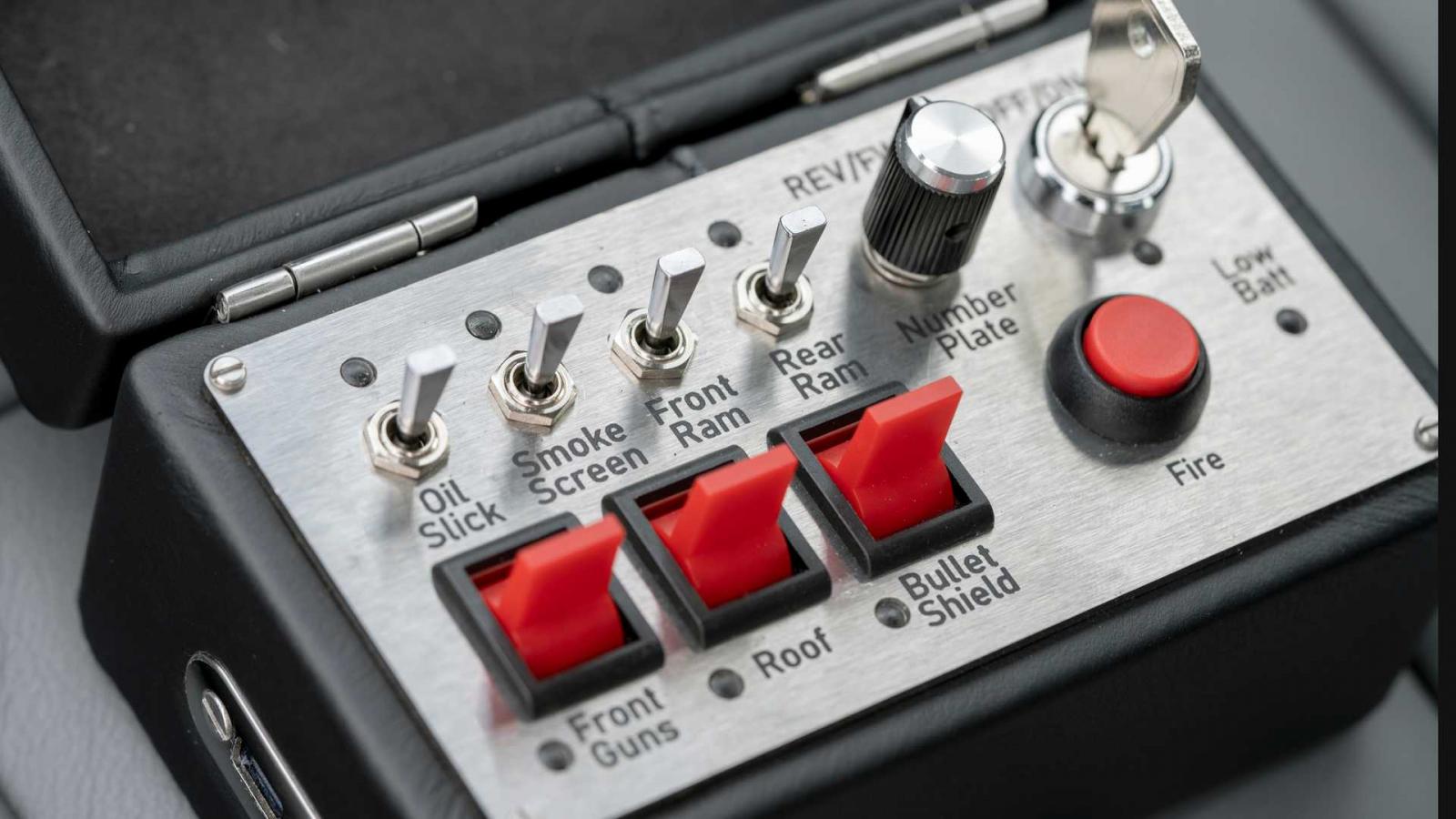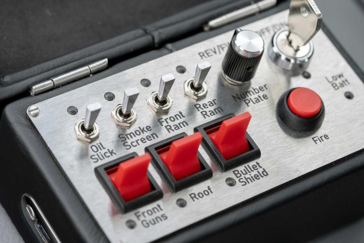 The trickery doesn’t end there though. The interior has also been overhauled to reflect the show car and as such, it comes fitted with a remote control panel for all the gadgets as well as an actuator button on the gear lever and additional switchgear inside the central armrest. Fans will also love the faux radar screen tracker map and there’s even a telephone mounted in the door. Need to store your weapons out of sight? There are under-seat storage trays for that purpose.