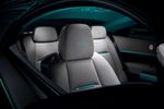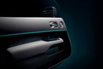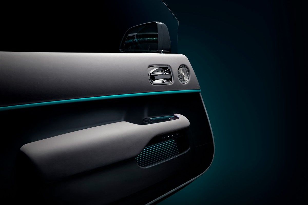 The highlight of the Wraith Kryptos's bespoke detailing is arguably the elaborate, bi-coloured illuminated headliner which depicts an in-motion data-stream inspired motif. The door pockets continue this theme with woven leather and Kryptos Green threads to reveal a subtle illumination that fades towards the base of the pocket. The centre tunnel is also exquisitely stitched, which repeats the horizontal lines of the door pockets.