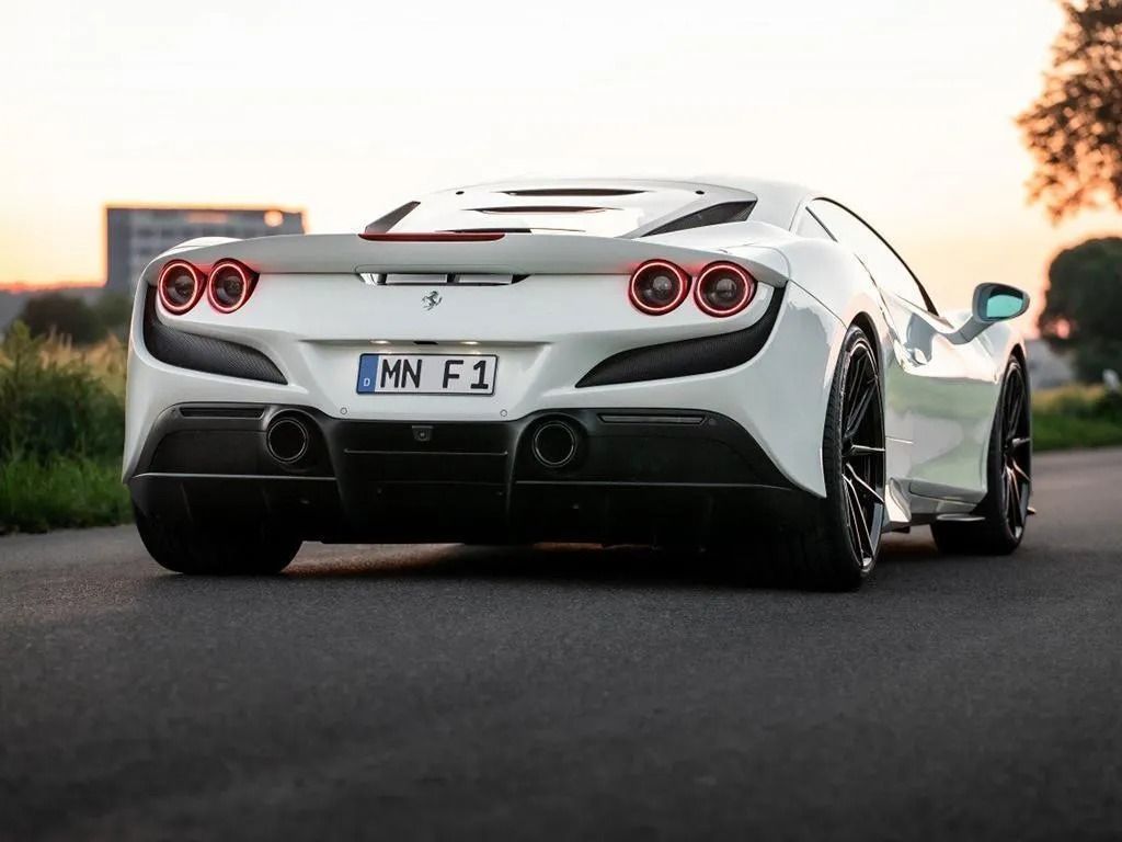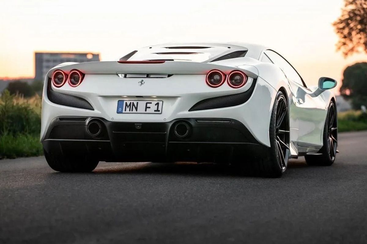 By lowering the F8 Tributo's ride height and fitting different-sized alloys fore and aft, Novitec has given the Ferrari a meaner stance.