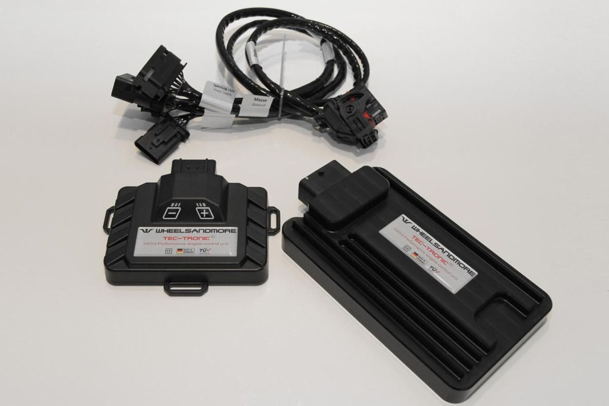 How does Wheelsandmore manage to extract that much more power from the Audi 4-litre V8? First of all, the install their own engine control module, which operates under very liberal parameters. A custom crafted exhaust system and downpipes improves gas-extraction efficiency and there are reshaped air intakes. They will even naughtily remove all particulate filters to improve flow rates.