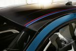 Viewed from above, or a high-aspect side angle, you’ll notice the signature BMW racing stripes, in light and dark blue, with red, which have been embedded into the roof’s carbon-fibre.