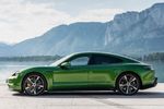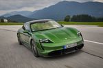 A pair fo synchronous electric motors, one powering each axle, generates a maximum of 390 kW and 640 Nm of torque in the Taycan 4S which comes equipped with a 79.2 kWh battery pack. Performance from zero to 100 kph is claimed at 4.0 seconds with a top speed of 250 kph. Maximum range is estimated at 407 km.