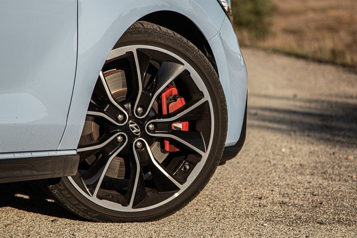 The Performance Blue paintwork, which is like a powder blue (it's not so easy to tell from the photographs of the test unit) and 19-inch wheels (with huge red brake calipers) complete the look. It’s actually a really good look; the i30 N has just the right amount of aggro without going full Civic Type R – and everyone knows you should never (need to) go full Civic Type R…