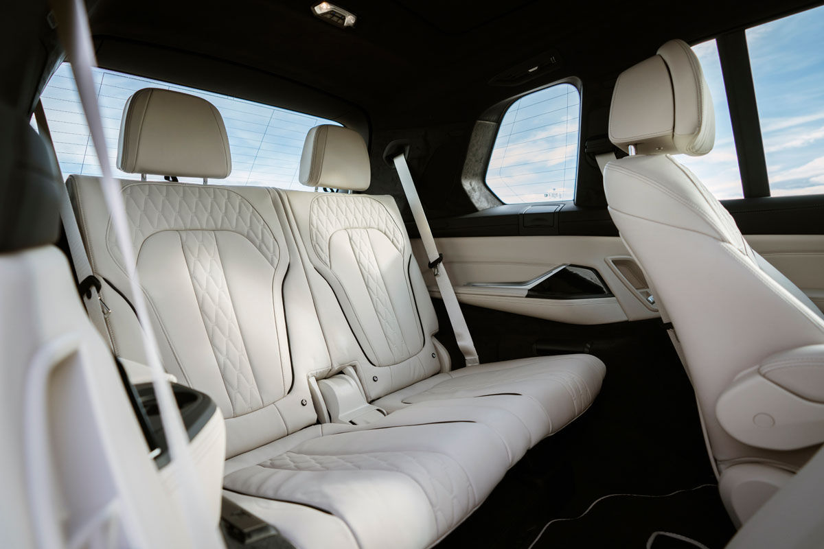 To give the newcomer’s interior – which can be specified in either 6- or 7-seat configuration – that bespoke Alpina look, the tuner has specified a crystal glass branded iDrive controller, a blue-illuminated transmission lever, a production plaque, illuminated door sills and the sports steering wheel hand-finished in Lavalina leather and adorned with the company’s blue/green stitching.