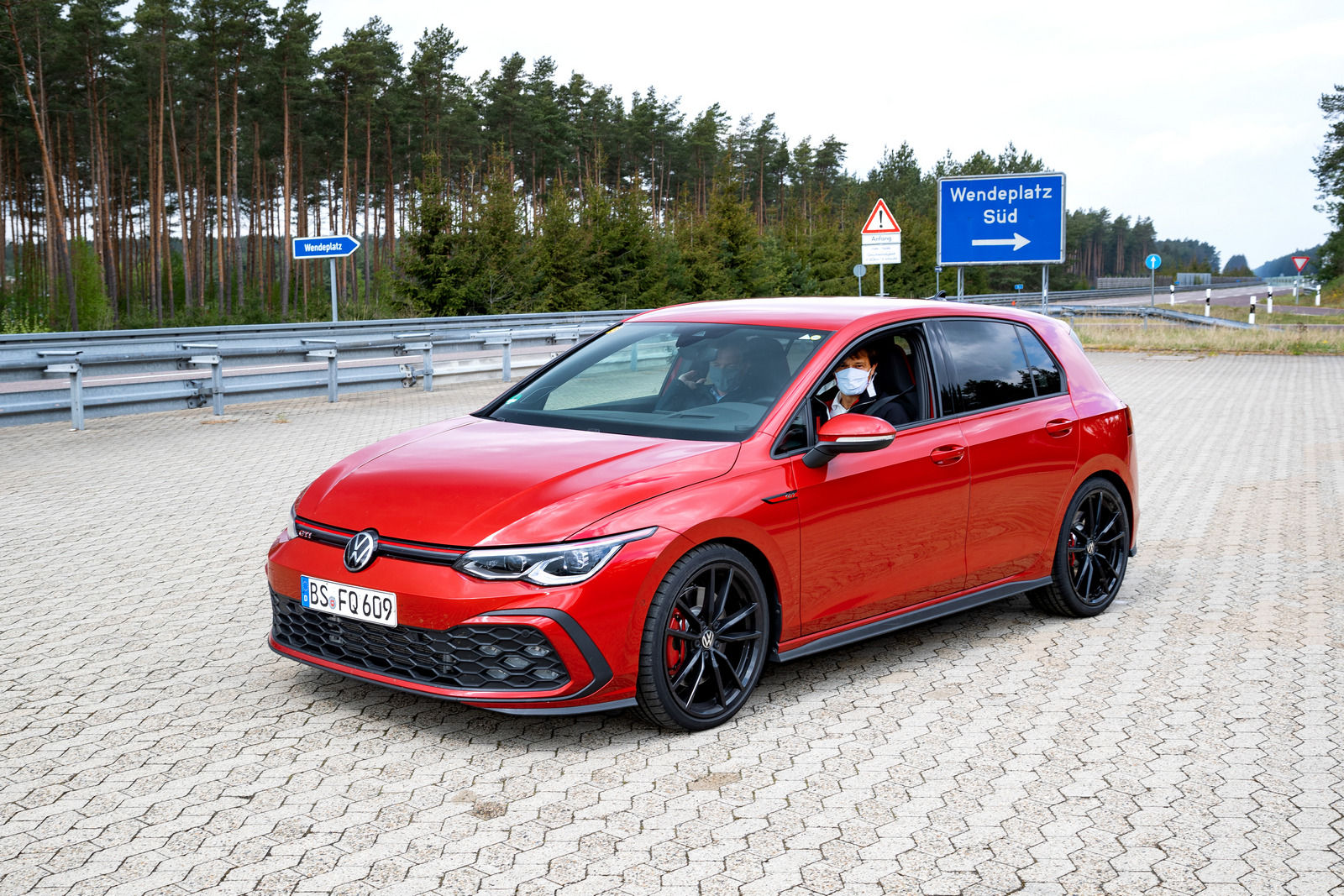 After filling out a variety of forms to gain the security clearance to venture beyond the heavily-guarded perimeter of Volkswagen’s vast Ehra-Lessien development centre in Germany, I find myself seated next to VW’s head of driving dynamics, Karsten Schebsdat, as he guns the new Golf GTI flat out in 7th gear along a seemingly never-ending straight. The course is ultra-smooth, 4-lanes wide (in parts) and a mesmerising 8.6 km in length.