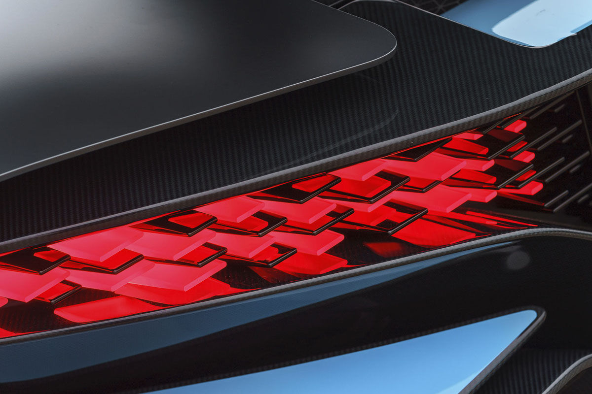 The tail-light clusters comprise a series of intricately-stacked fins (44 in all) that were created using 3D-printing.