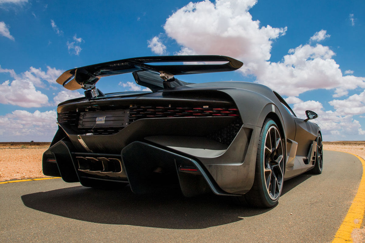 The roof, meanwhile, features a NACA duct that channels over the rear wing, which is 23% wider than that of the Chiron, via a central fin. Although the rear wing does not extend, its angle can be adjusted for individual modes and continues to function as an air brake. The rear diffuser features a quartet of exhaust pipes to give the 8.0-litre W16 its unique sound signature.