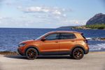 The top-spec Highline derivative adds standard features such as 18-inch Cologne alloy wheels, Comfort Sport Seats, inductive wireless charging, driving profile selection, dual-zone climate control air conditioning, LED headlights and Composition Media with App-Connect. Options for the T-Cross Highline include an R-Line exterior with 18-inch Nevada alloy wheels, Design Package in Energetic Orange, Beats sound system, Discover Media (with Navigation), Active Info Display, Park Assist, Adaptive Cruise Control (includes Blind Spot Monitor, Foldable Mirrors, Lane Assist and Front Assist), Keyless Entry, Removable Towbar and Titanium Black-Energetic Orange seats, titanium black instrument panel, black carpets and ceramique headliner.