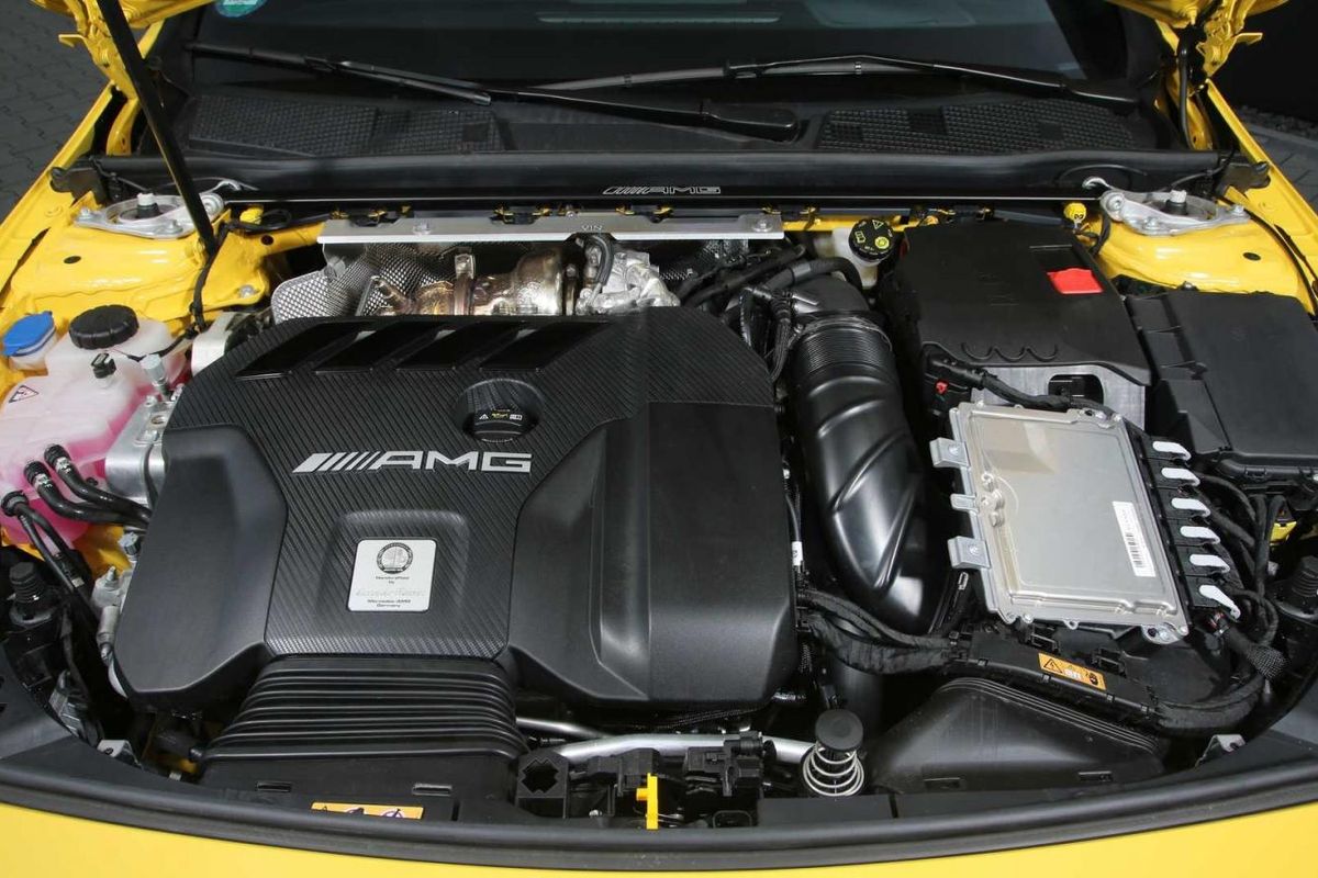 With a new turbocharger and revised control algorithms, the RS 525 boosts 386 kW and 600 Nm. Those are very impressive outputs for a compact four-cylinder engine, and notable gains on the factory AMG A45 S settings of 310 kW and 500 Nm.