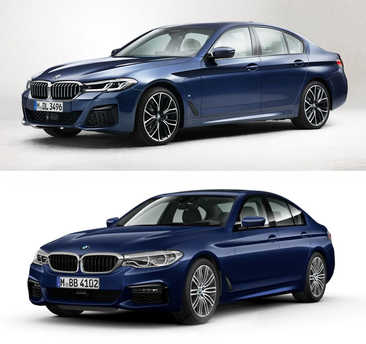 New vs Old: the biggest changes to the G30-generation sedan appear at the front. Note the revised new headlamps and bumper.