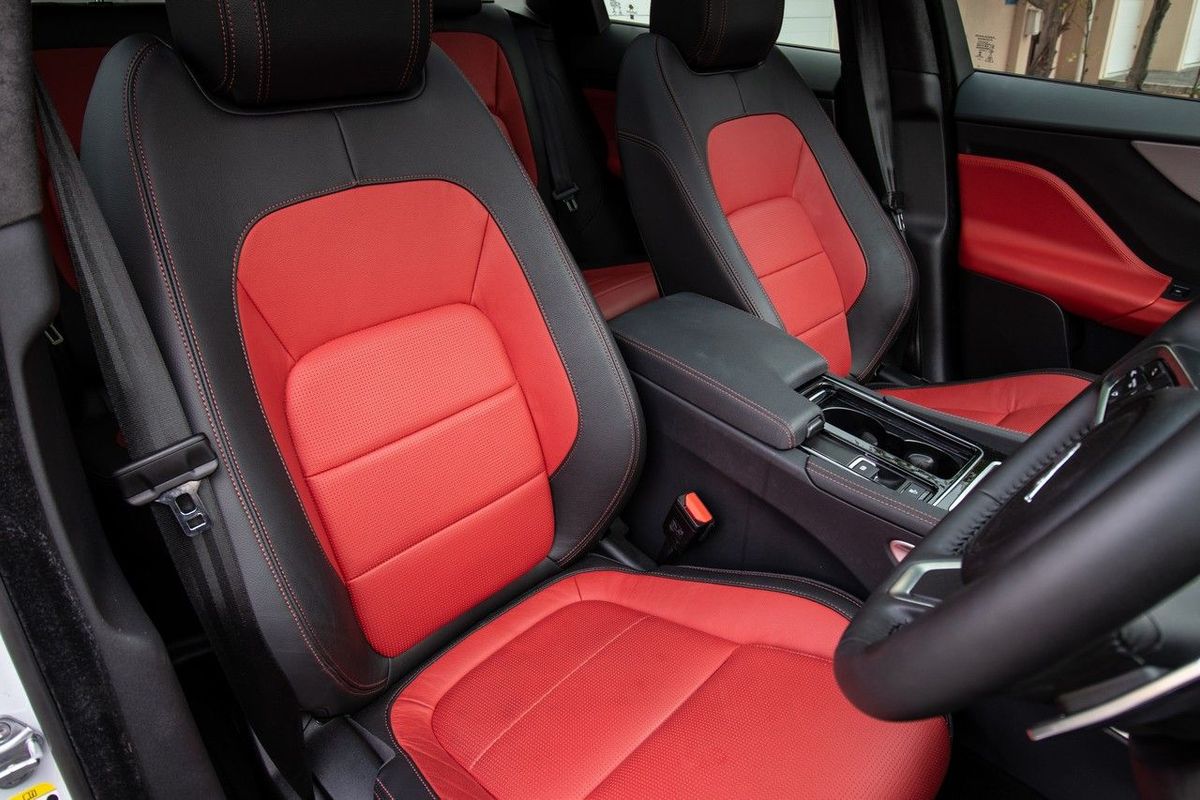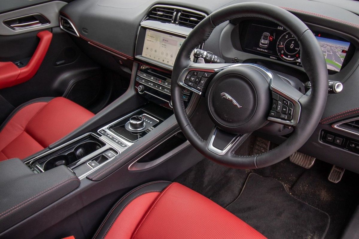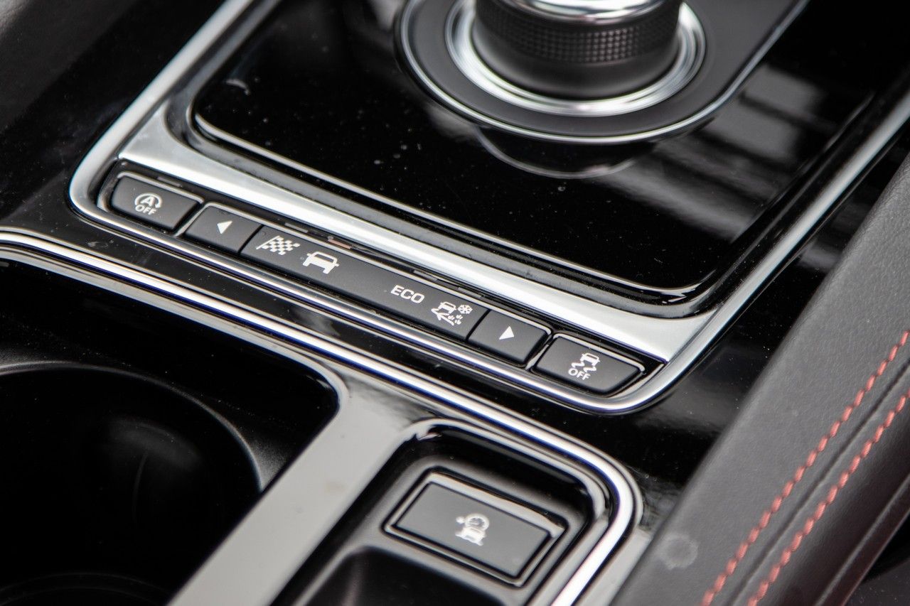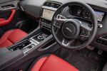 Initial reservations about the F-Pace's cabin lacking the "wow factor" have certainly been addressed in this 25d AWD Chequered Flag test unit; vibrant pimento red leather trim (with ebony accents) enhance the derivative's sporty theme and the front seats are not only 10-way electrically adjustable, but additionally feature a heating function. There are some cool subtler touches too, such as the transmission selection knob that rises out of the central stack and the engine start button that pulses red like a heartbeat… We never grew tired of it.