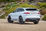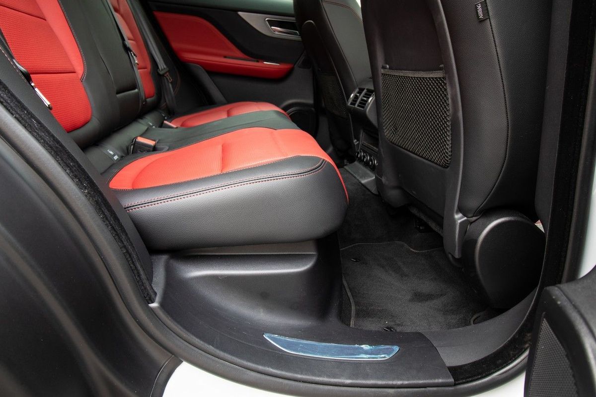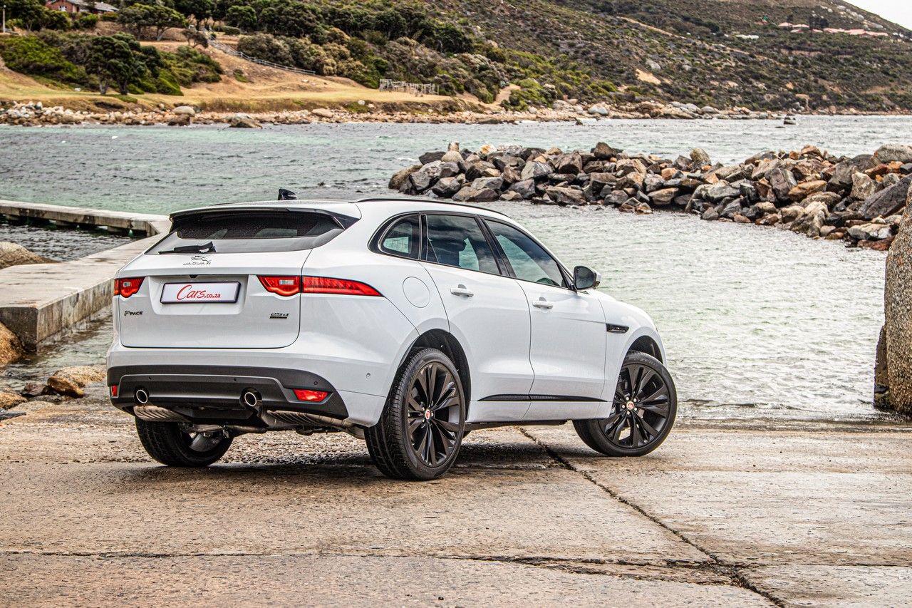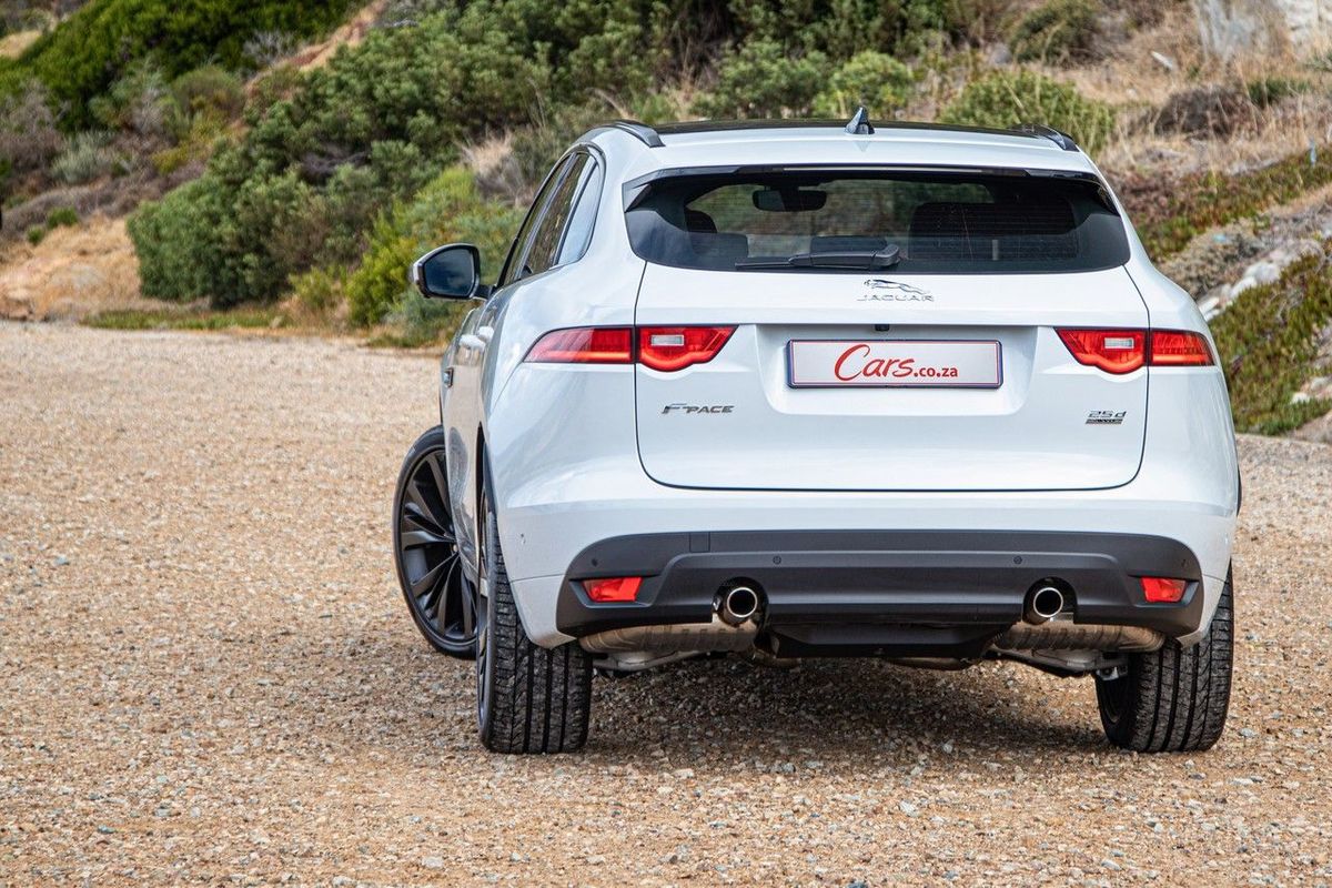 The white/black contrasting theme and twin exhaust outlets give the F-Pace strong aesthetic appeal.