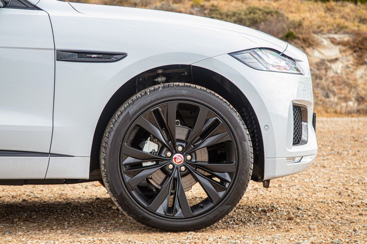 The Jaguar F-Pace looks incredible on big wheels – our unit featured these 22-inch gloss black beauties.