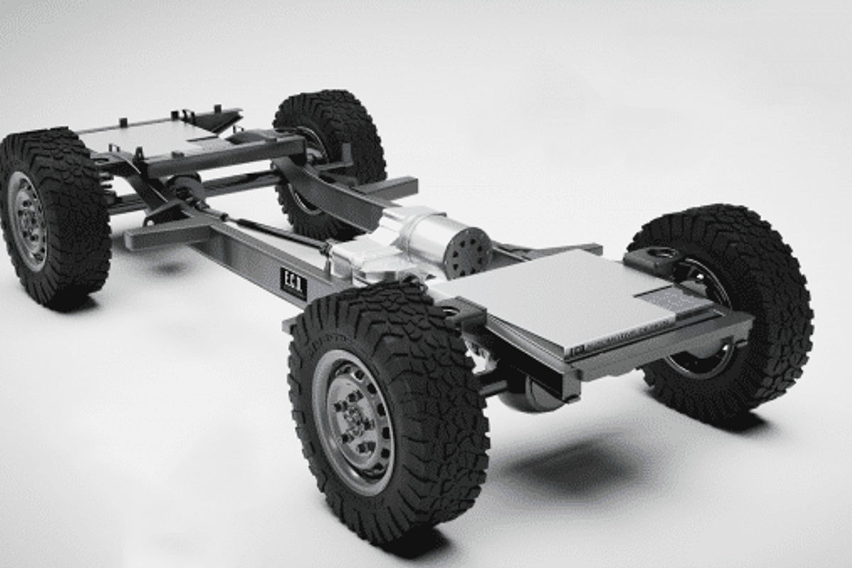 You might imagine that the ladder-frame chassis would be a nightmare to electrify, but it creates a lot of room and favourable mounting structure for battery packs. ECD simply removes the body structure and then places the battery packs where required.