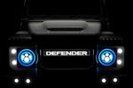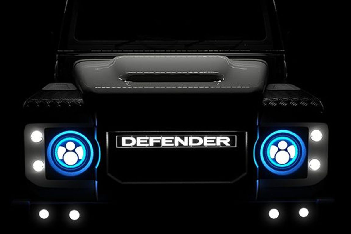 Detailing and differentiating the ECD electric Defender is a boldly illuminated front, with most of the grille section now comprising a ‘Defender’ LED badge.