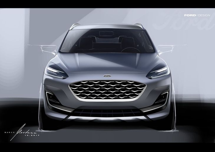 This is a design sketch of the Ford Kuga, but the new mid-size SUV from Ford will feature the brand's latest design language.
