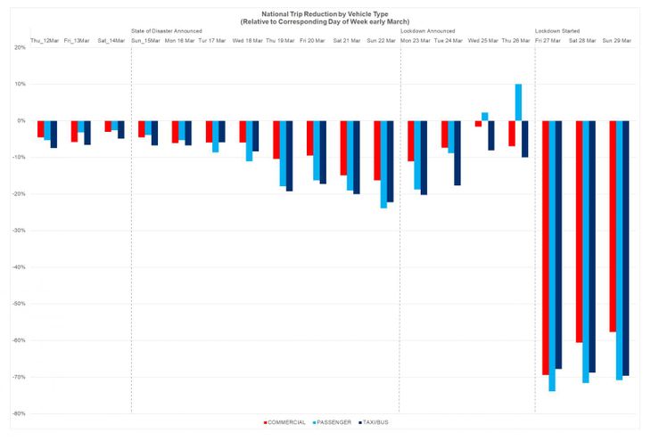 Using data from vehicle trackers, it’s clear to see how much traffic has reduced since the national lockdown was implemented on 27 March 2020.
