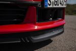 For buyers who have specified the sport exhaust, which substitutes the standard car’s quad rectangular pipes with two large-bore oval ends, the Sport Design Package also includes a redesigned, colour-coded rear apron. In the case of the orange cabriolet, however, that part is finished in optional gloss black, as are the centre of its front splitter, the lower trims of side skirts and the inner, extending part of its active rear wing.