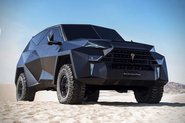 The Karlmann King Ground Stealth Fighter is a luxury SUV featuring a striking diamond bulletproof armour and is powered by a powerful 6.8-litre V10 engine producing 268 kW and 620 Nm of torque. Weighing in at 6-tonnes, this SUV can only reach a top speed of 140 kph but can operate in temperatures of up to 90°C and -40°C.