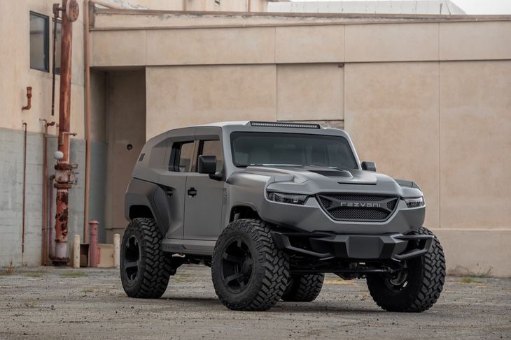 Let’s up the ante with the hardcore and aptly-named Tank produced by California-based firm, Rezvani. Power comes from a 373 kW 6.4-litre V8 engine as standard (a 746 kW supercharged 6.2-litre V8 is optional), on-command 4×4 capability, a top-end FOX off-road suspension system and GRID off-road wheels.
