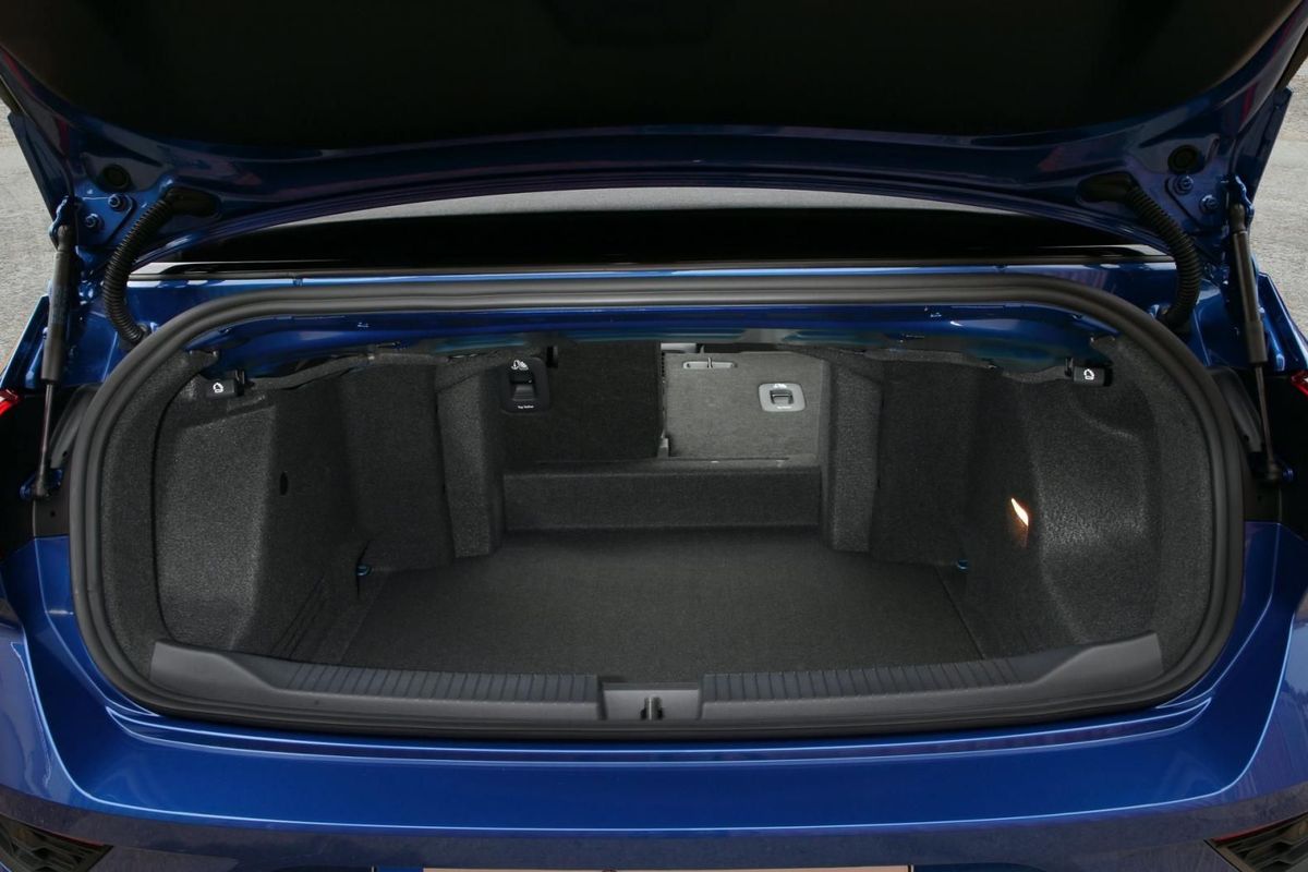 The image appeal of VW’s crossover cabriolet does come at a sacrifice to the T-Roc luggage capacity. Whereas a five-door, metal roof T-Roc can carry 445-litres of gear in the back, the cabriolet’s capacity is reduced to 280-litres.
