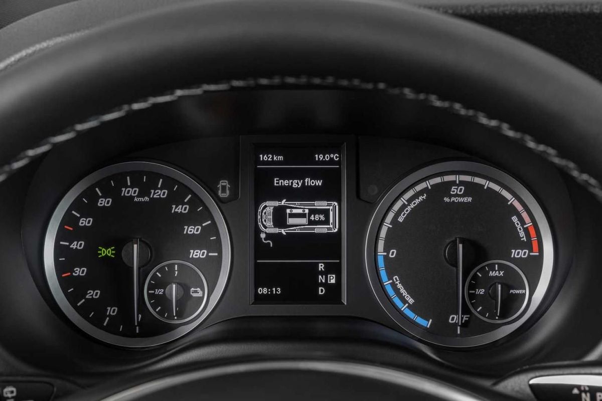 Mercedes-Benz has also equipped the eVito with new safety features. These include automated emergency braking and Distronic adaptive cruise control. A curious detail of the eVito is that for all its advanced powertrain specification, the instrument binnacle is still served by analogue dials.