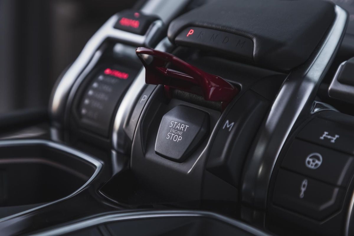 As in other Lamborghinis (and fighter jets) you have to flick open the red lid to press the starter button.