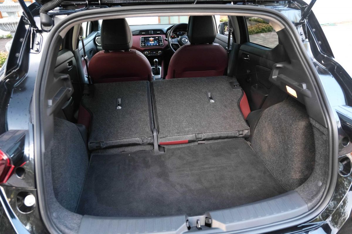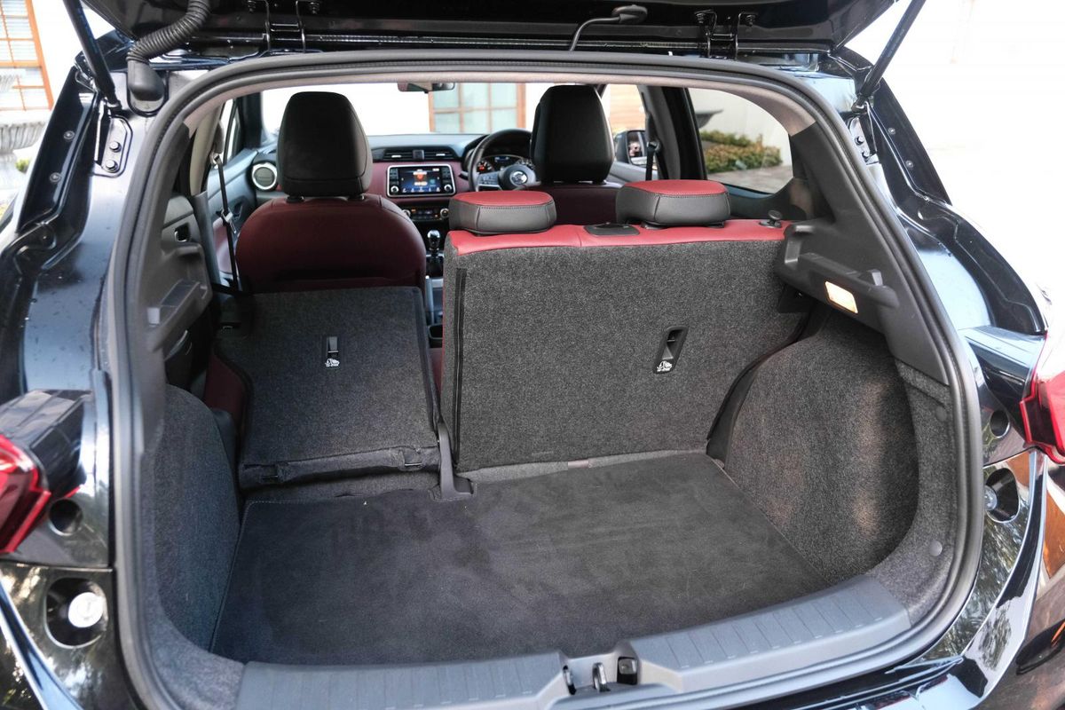 A red-and-black leather-trimmed interior awaits you inside this Micra. Some of our testers found it appealing, others didn’t, so you will have to make up your own mind in this regard. While the perceived build quality is generally good, we did find some cheap plastic in the centre console that appeared to be installed poorly (it felt quite loose).