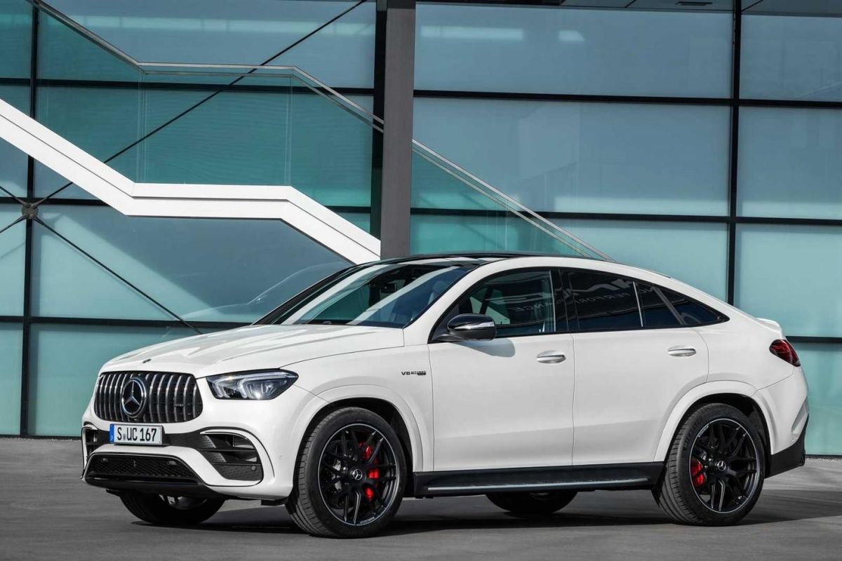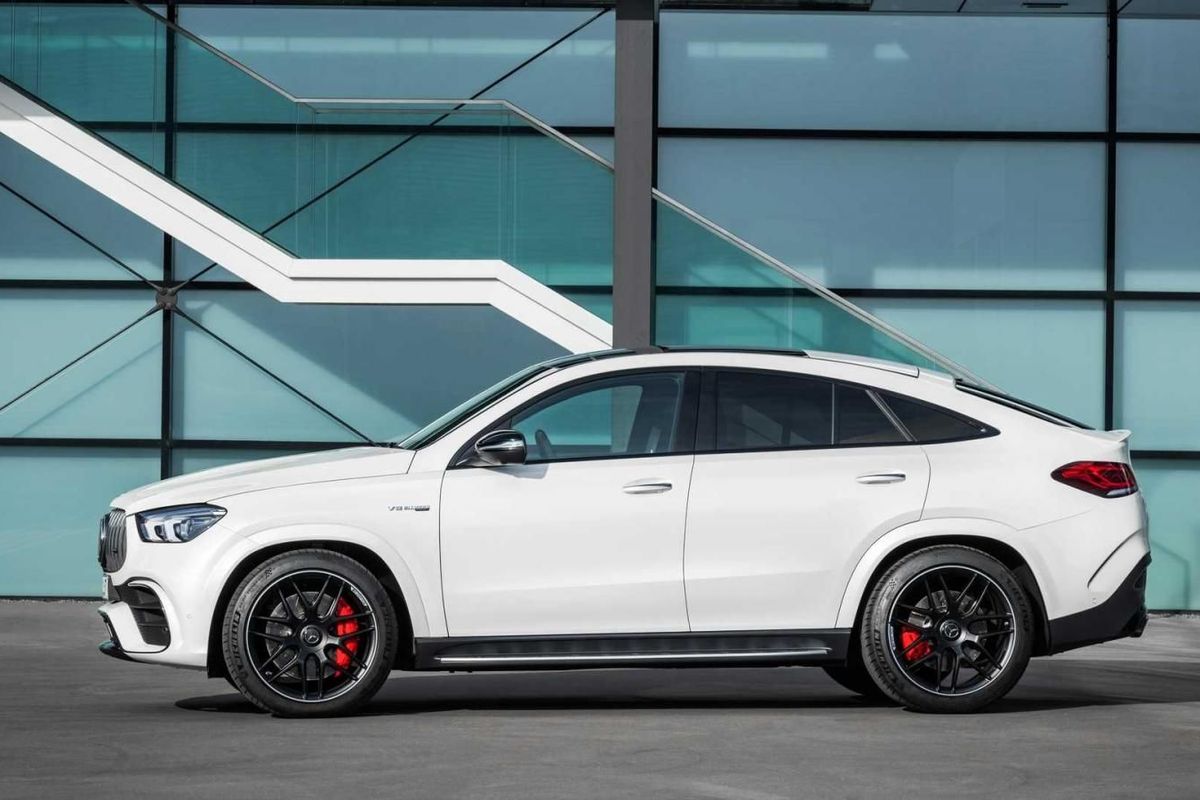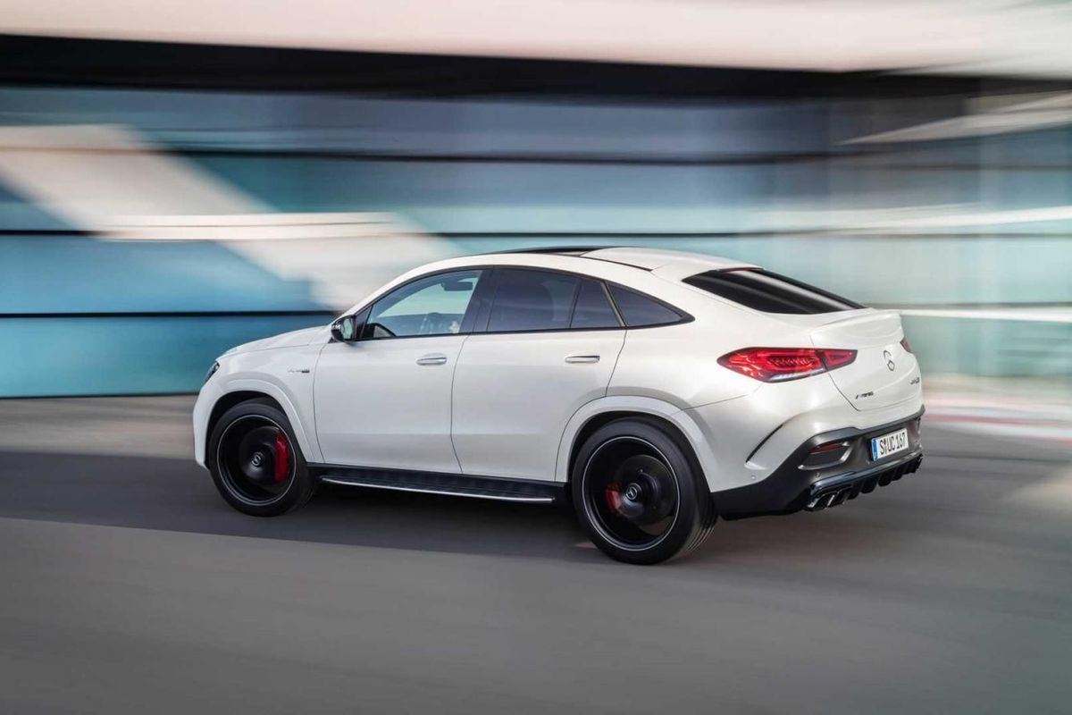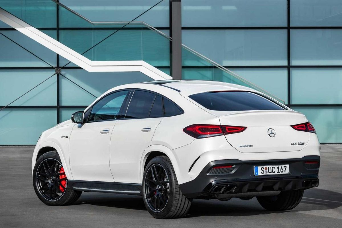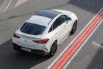 Apart from redesigned headlamps, an elaborate Panamericana grille and a bumper with enlarged air intakes at the front, the GLE 63 S Coupe features flared wheel arches and -side skirts, 22-inch alloys and, at the back, a diffuser, a lip spoiler on the tailgate and a quartet of exhaust tips.