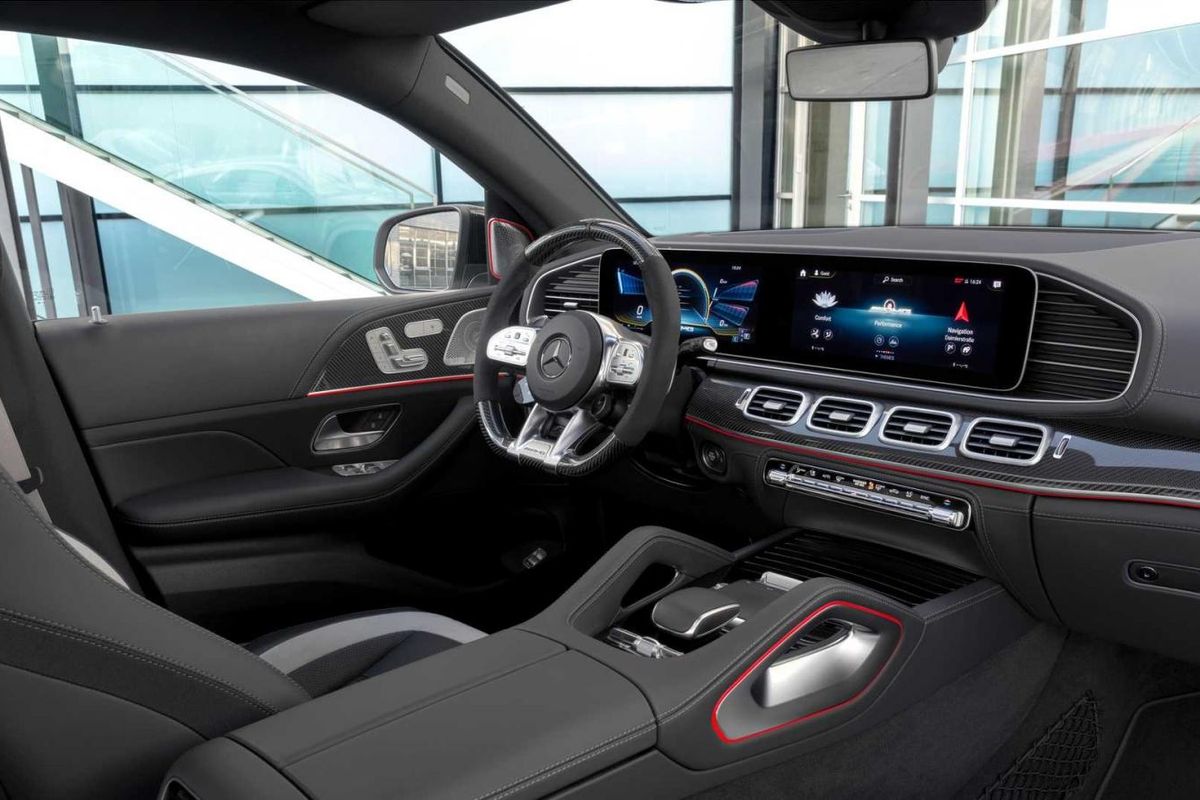 Who said red striping was the preserve of hot hatches? The GLE 63 S Coupe's interior is rather generic, but still AMG specific.
