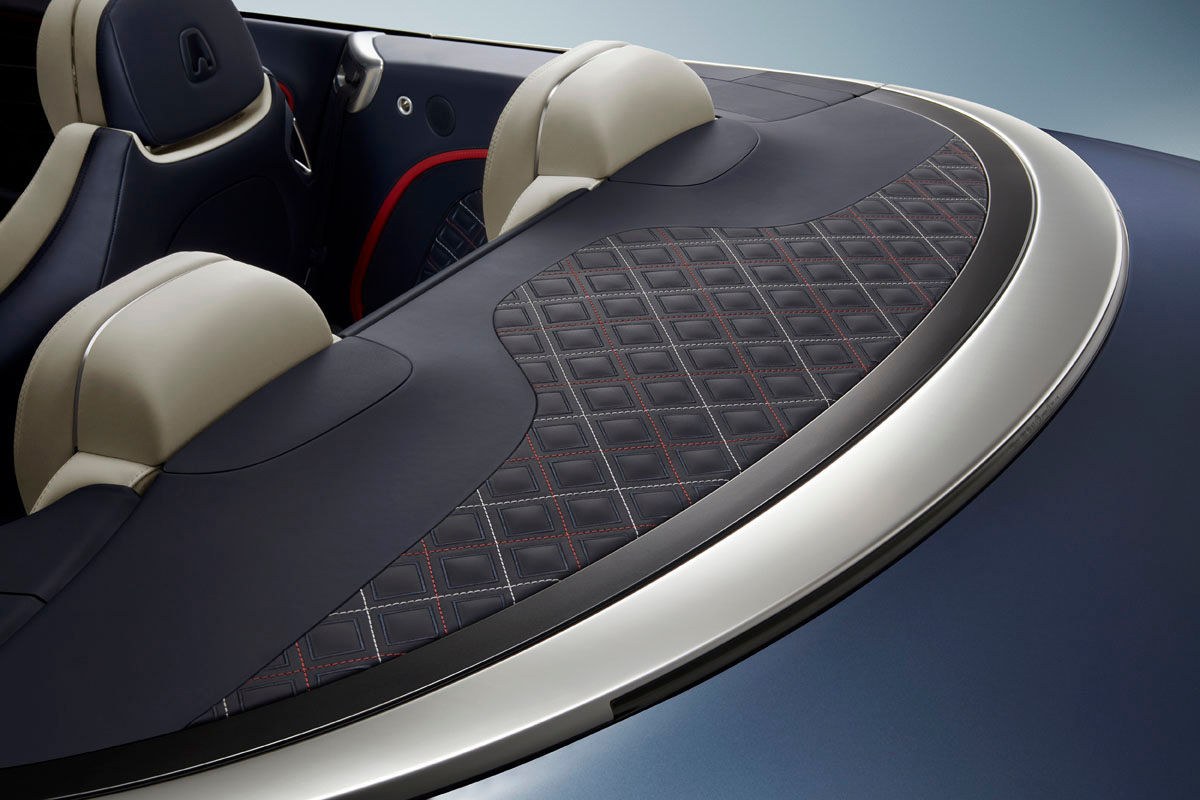 The daimond detailing extends to the opulent convertible's meshed side vents and even the folding roof's tonneau cover.