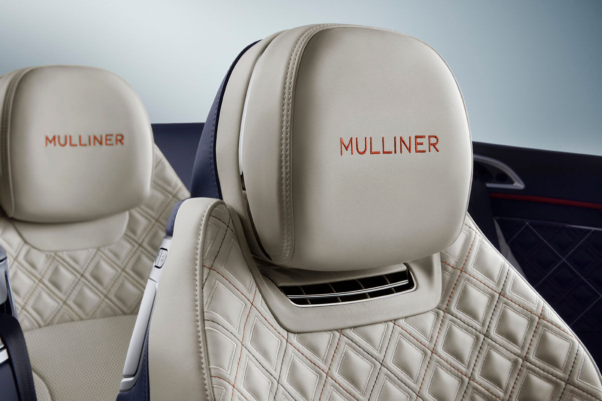 The Continental GT Mulliner Convertible is available with a choice of 8 custom-made tri-colour interior schemes. A Mulliner-designed palette defines the 8 combinations, of which the 3rd of the 3 colours accents the interior by way of a distinctive design line (red, in the case of the car pictured here). What’s more, the hand-stitched leather is embroidered with Mulliner branding in the headrests.
