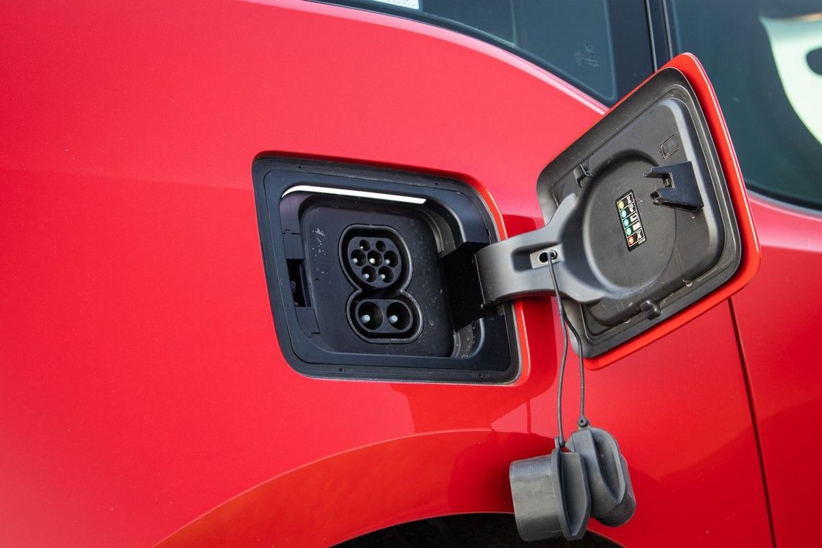 The BMW i3. Note the 2 panels, the one towards the rear is where you plug in, while the front is to top up the range-extender petrol engine.
