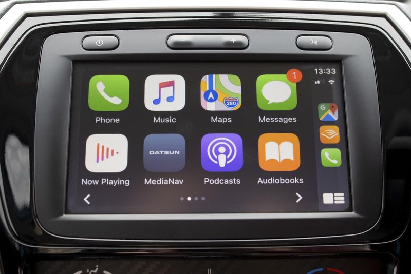 Apple Carplay and Android Auto functionality add some hands-free connectivity inside the Datsun Go.