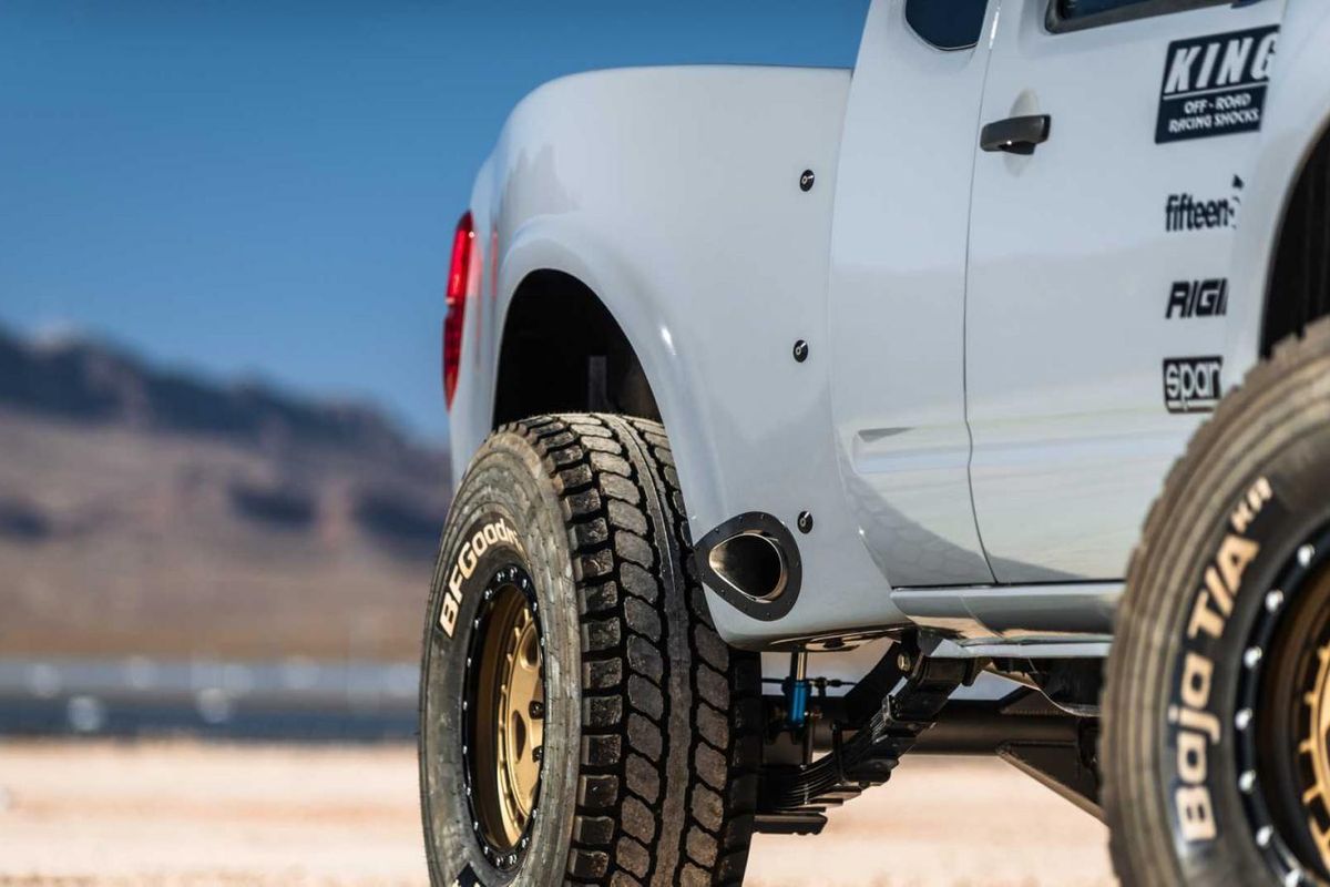 Interestingly, this SEMA Navara is rear-wheel drive only, as is the case with many American racing trucks, specially built for desert driving. To aid traction, it rolls huge 37-inch BFGoodrich Baja T/A tires.
