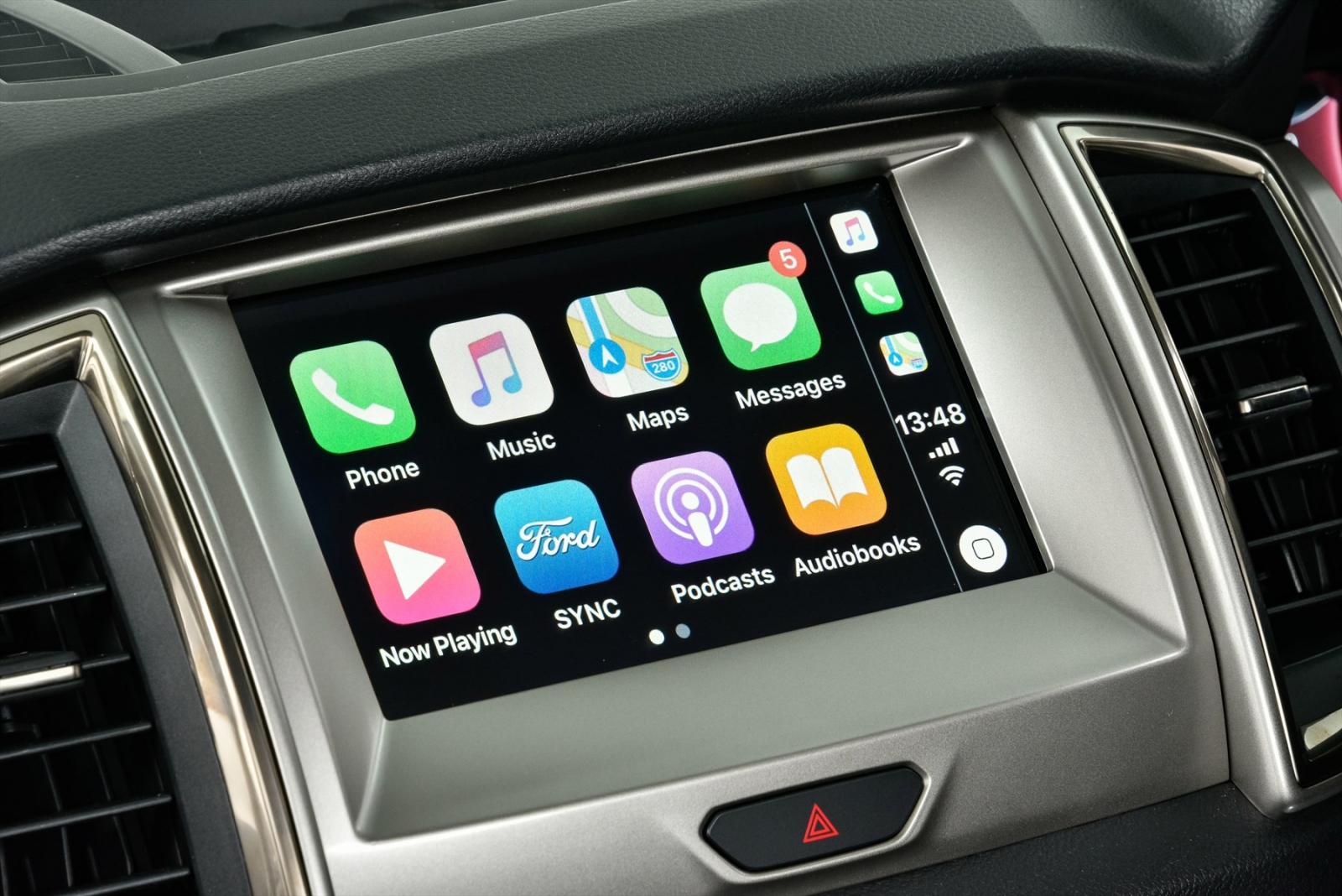 Apple Carplay and Android Auto seamlessly connect through the 2 front USB ports.