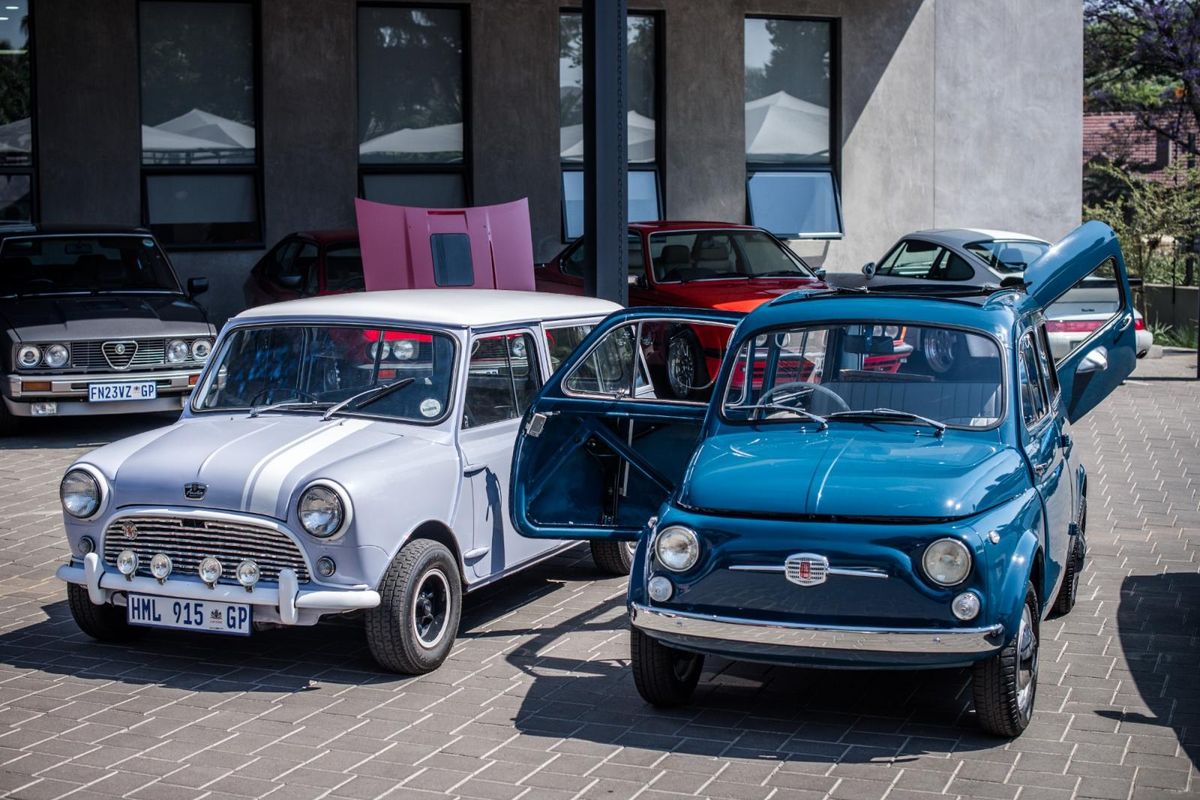 Cute wagon pairing – Austin Mini and a Fiat 500 Giardiniera. Photo by Vaughn Humphreys