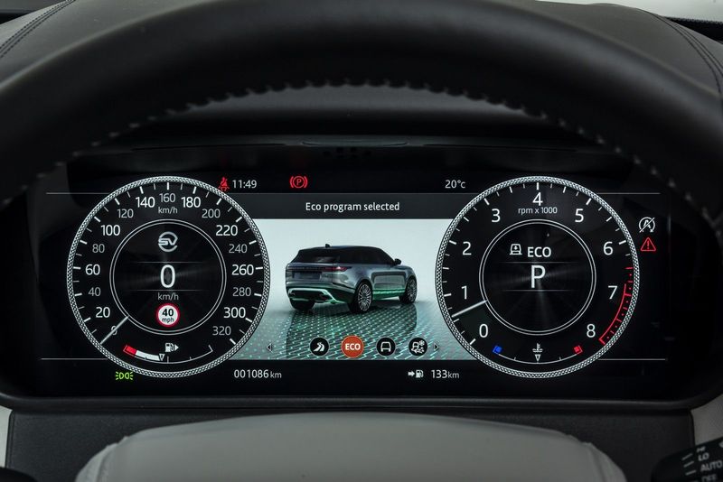 From the outside, the Velar looks even more impressive than the Launch Edition. Twenty-one-inch wheels are standard, but massive 22-inch wheels (shod with 265-profile tyres) are optionally available. At the rear, the exhaust has been lightened by 3.5 kg per side and the quad tailpipe outlets are integrated with the SUV's rear bumper design. The brakes, developed by Brembo, are of larger diameter to provide extra stopping power. The red brake callipers also feature Land Rover lettering, but for those who want something a bit more discreet, gloss black callipers are also available.