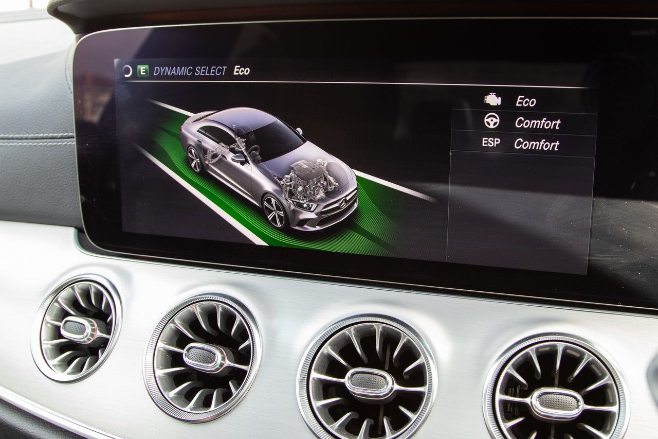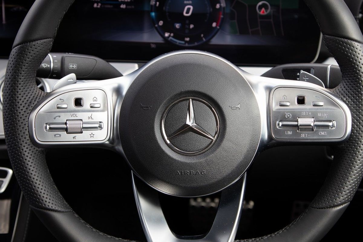 A full-width infotainment screen is fitted with the latest MBUX software (you can talk to it and issue it commands by saying “Hey Mercedes”), plus there’s an optional wireless charging bay underneath the central air vents and at least 2 USB ports up front to connect to the infotainment system.