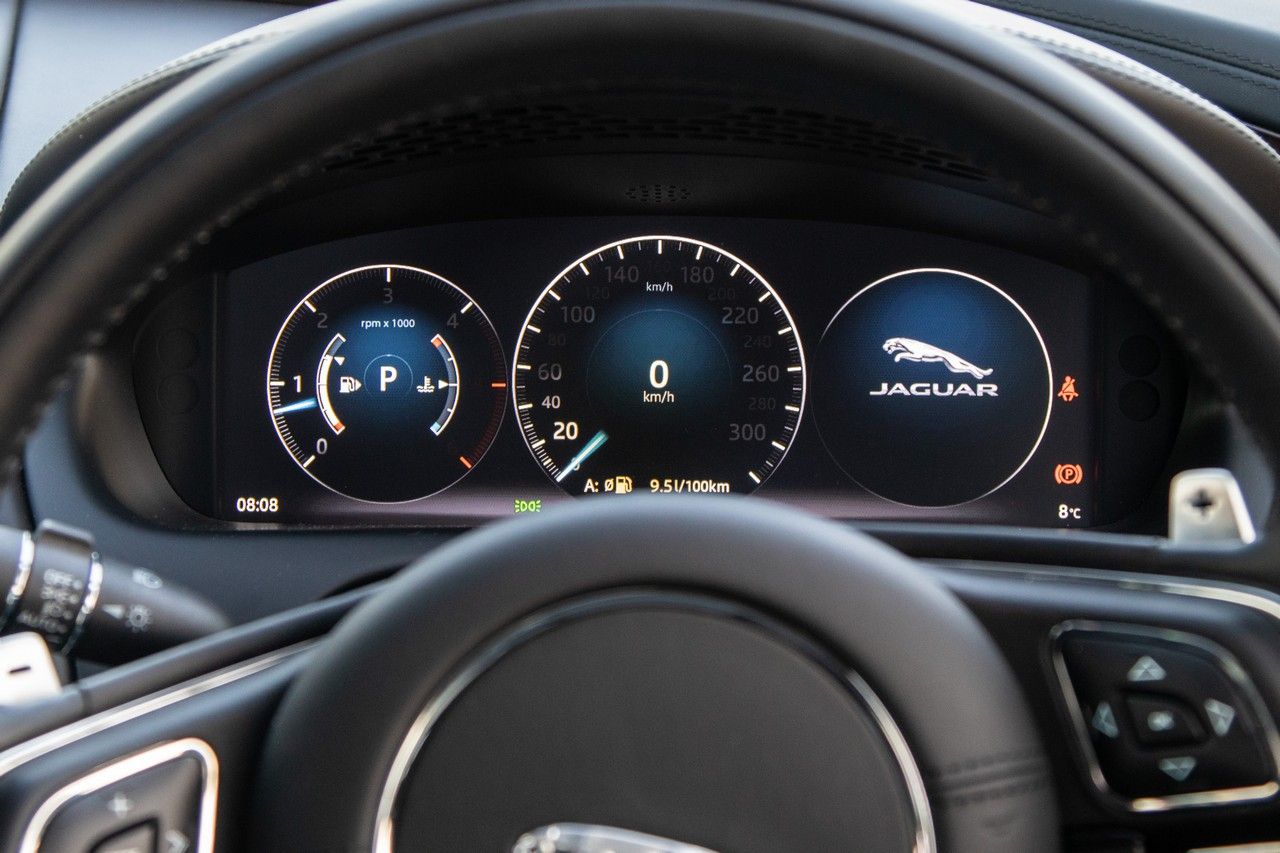 To be fair, the XJ50 offers most of the important advancements in modern infotainment and safety systems. The large touchscreen system is well-stocked with features, navigation is standard and, on the safety side, autonomous emergency braking is standard. Even if it includes traffic-sign recognition, the 12.3-inch digital instrument cluster lacks the layers of information and variability of more modern rivals. More high-tech features such as BMW's gesture control, or the Mercedes-Benz MBUX's digital assistant are missing. Apple CarPlay/Android Auto is available, however.
