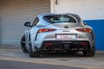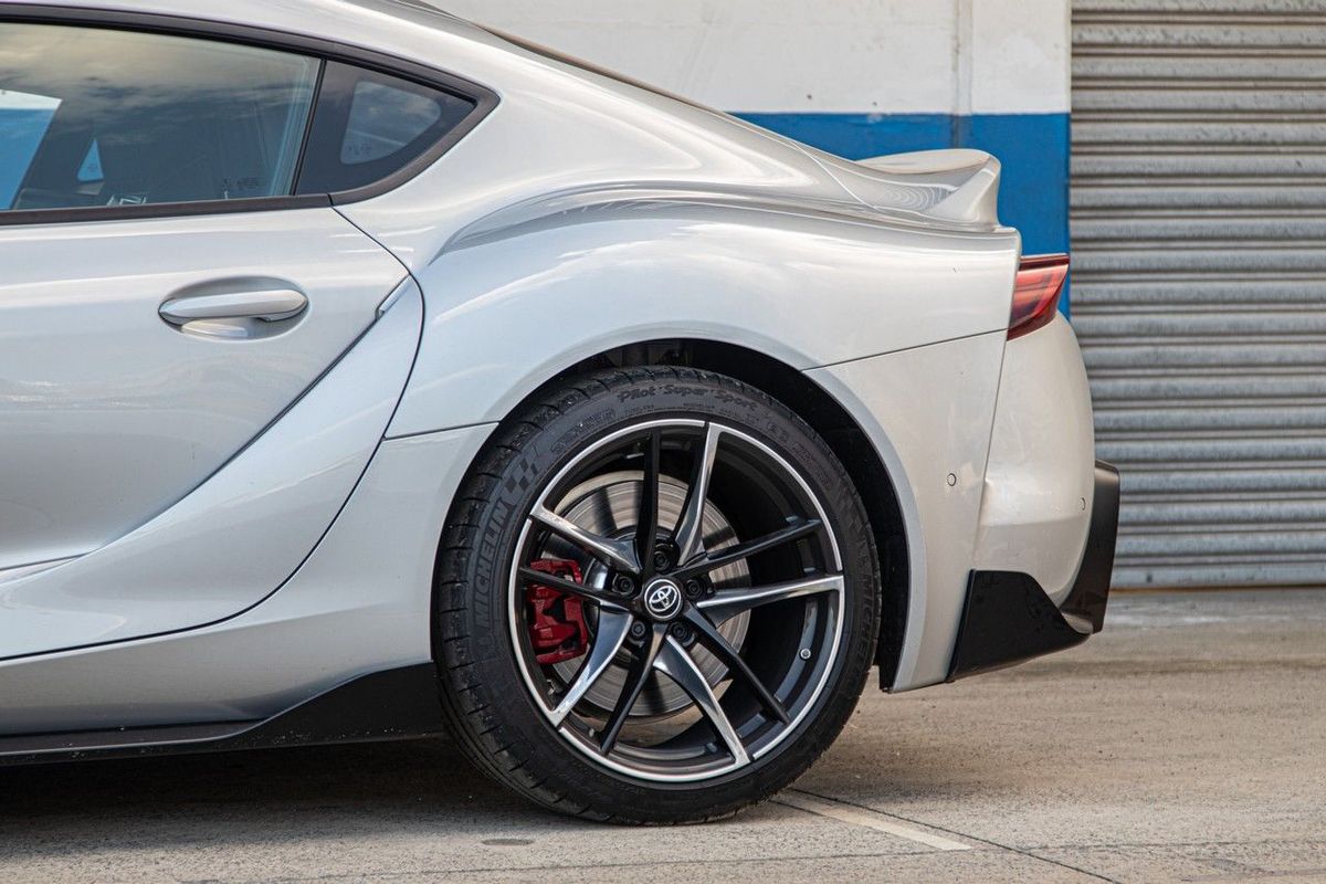The rear 3-quarter aspect presents our favourite view of the GR Supra. It's rear-end styling is particularly resolved.